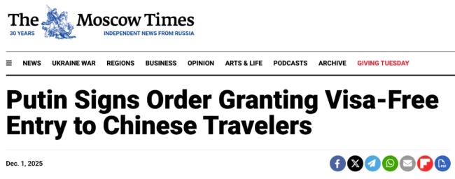 2025 年 12 月 1 日,俄罗斯政府正式发布最新入境政策:今后,中国公民只需持普通护照,即可在无需提前申请签证的情况下进入俄罗斯境内。