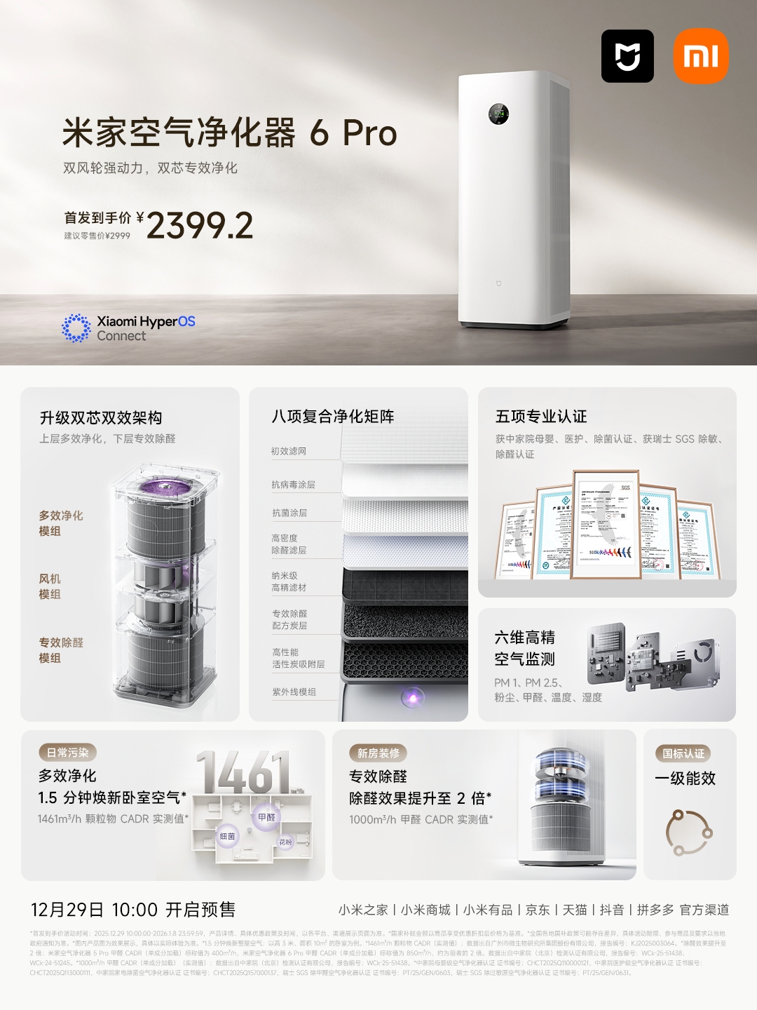 通过中家院母婴级、医护级、除菌认证及瑞士SGS除敏、除醛五大权威认证,符合国标一级能效标准,颗粒物能效提升率30%,额定功率92W,待机功率2.0W(网络状态)。