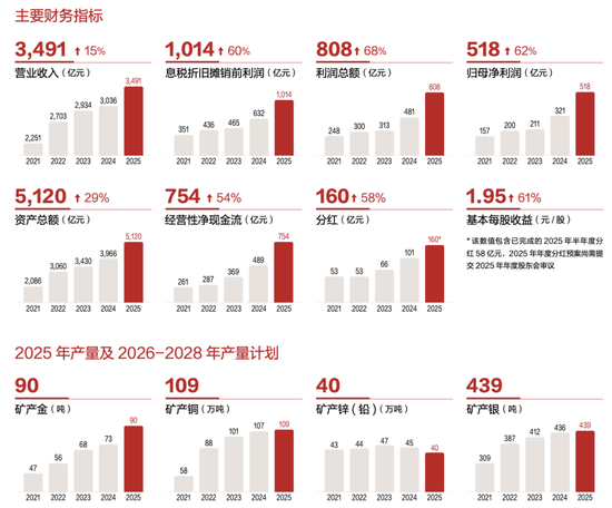 3月20日晚间,紫金矿业正式交出2025年成绩单。报告显示,公司2025年实现营业收入3490.79亿元,和上年同期相比(同比)增长15%;归属于上市公司股东的净利润达到了517.77亿元,同比飙升62%,创造了公司成立以来的历史最佳业绩,这也相当于公司上两年的净利润总和。矿产金矿和产铜产量均位居全国首位