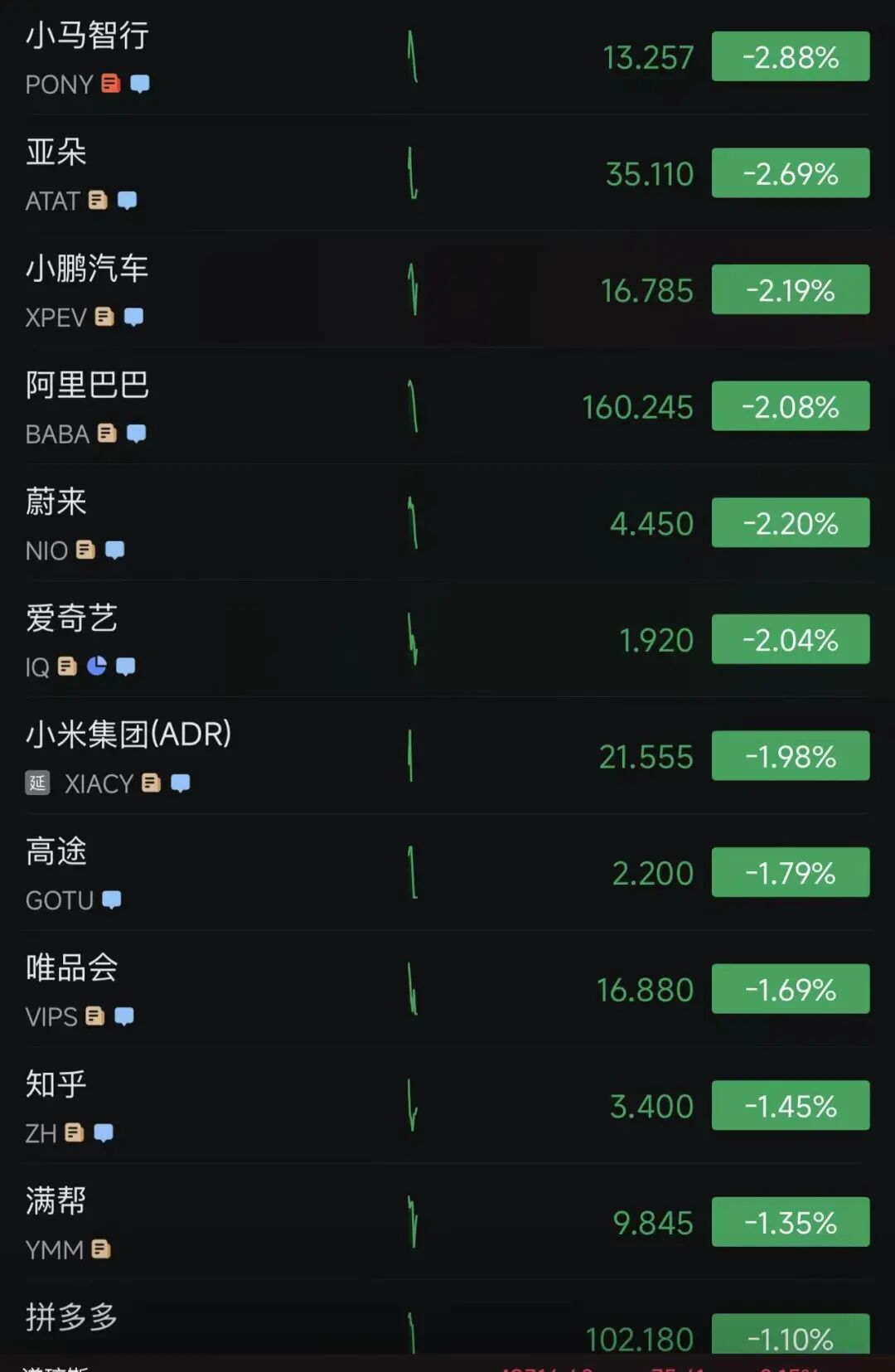 热门中概股多数下跌,金山云跌7.39%,网易跌6.93%,哔哩哔哩跌6.12%,万国数据跌5.28%。百度、富途控股跌超4.7%,腾讯音乐跌超4.2%。