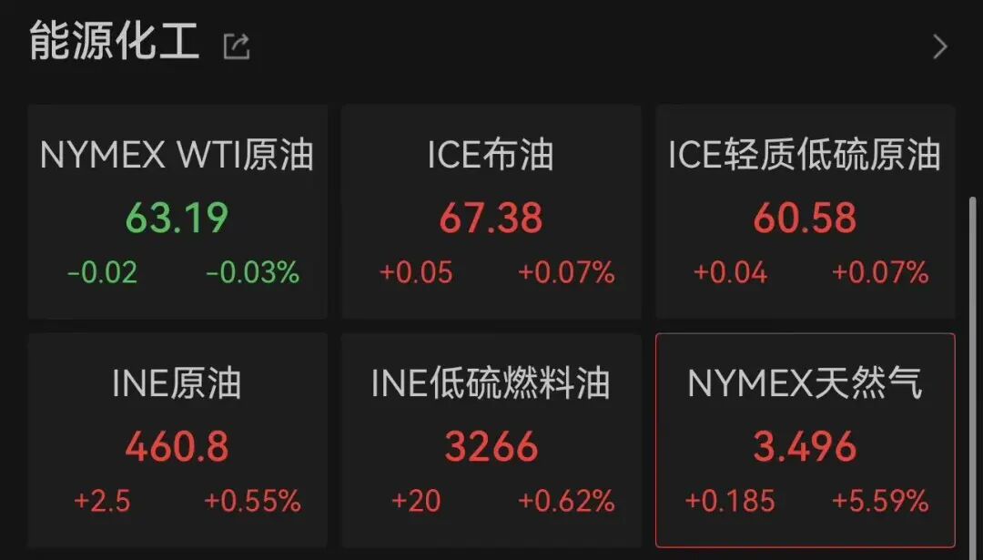 原油方面,布伦特原油涨0.07%,报67.38美元/桶。WTI原油跌至63.19美元/桶,跌幅达0.03%。