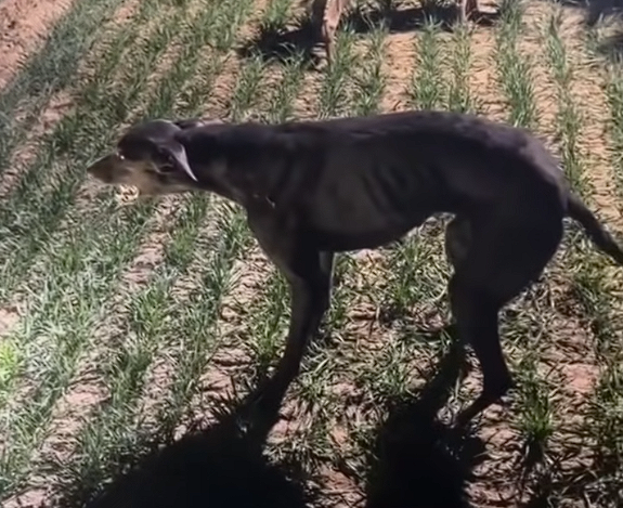 据悉,此事发生在河北唐山某野地,当属两条赛犬在野地里进行高速拉练后,其中一只突然“直挺挺地不动了”。