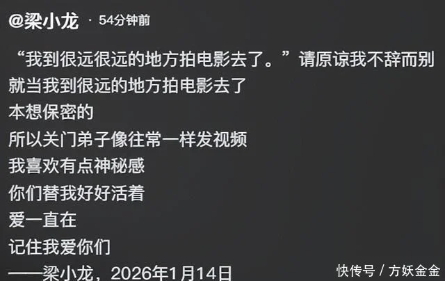 在梁小龙的账号下,家人为他发布了最后遗言,令人泪目。