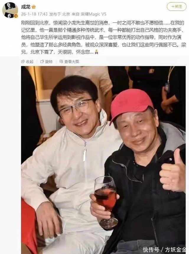 在他去世后,成龙发文悼念,字里行间充满了遗憾和不舍,这就是高手之间的惺惺相惜。