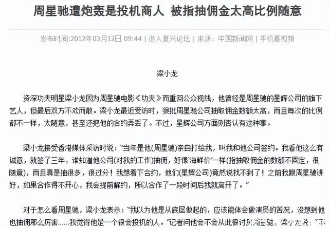 而且很多人认为是周星驰让梁小龙演火云邪神才让他再度翻红,但是梁小龙并不这么认为,甚至发文炮轰周星驰是投机商人。