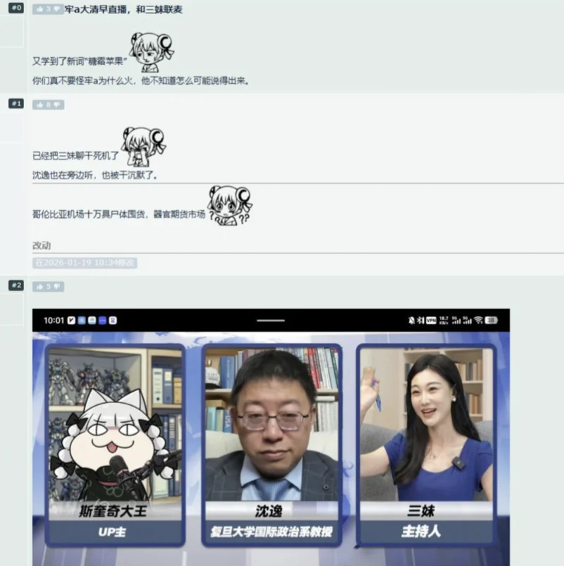 旅美留学生兼法医助理劳A(网名“斯奎奇大王”),携手知名学者沈逸、新西兰博主三妹开启连麦直播,引发网友热议。