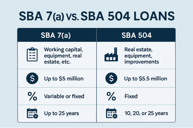 SBA的主要项目,7(a)贷款项目为向小企业提供贷款的金融机构提供担保。该项目允许企业主最多借款500万美元,用于营运资金、债务再融资、购买设备,以及购买或升级房地产和建筑等用途。