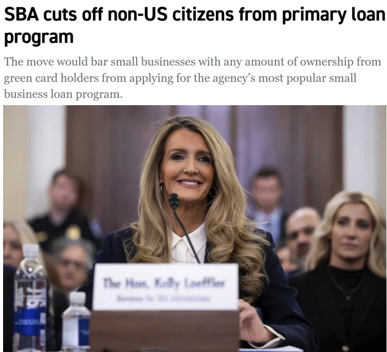 近日,美国联邦小企业局(SBA)公布一项政策调整,从3月1日起,绿卡持有者以及其他非美国国籍人士均将被排除在其主要贷款项目之外。