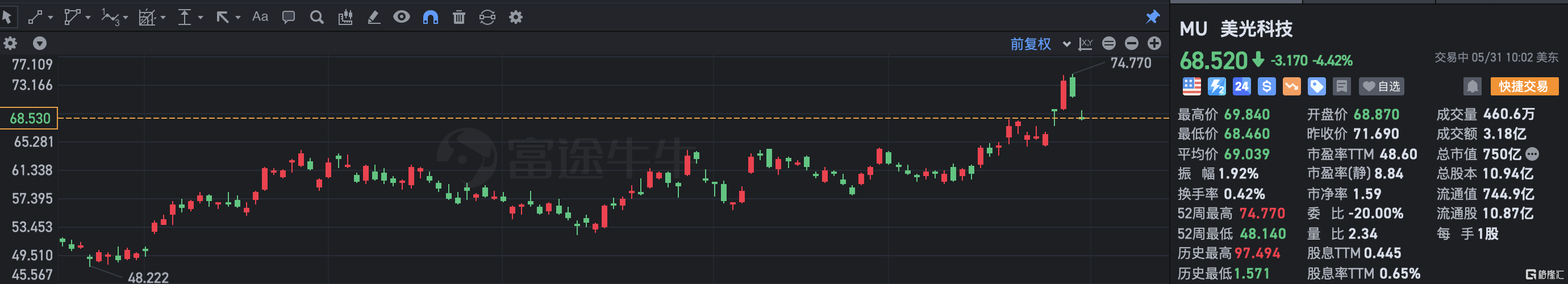 美光科技跌超4% 高管售出2万股普通股 Source 来源:格隆汇 格隆汇5月31日丨美光科技(MU.US)跌4.42%,报68.52美元,总市值750亿美元。据SEC披露的文件,美光高管Deboer Scott J于5月26日以每股均价70美元售出2万股普通股股份,价值约为140万美元。 炒股开户享福利,送投顾服务60天体验权,一对一指导服务! 责任编辑:郭明煜