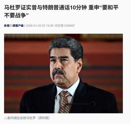 就在2天前,当地时间2026年1月1日,委内瑞拉总统马杜罗证实于2025年11月21日与美国总统特朗普通话,双方通话时长为10分钟。同时,马杜罗否认曾与特朗普进行第二次通话。