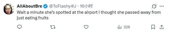 “等一下,她在机场被人拍到了,我还以为她因为只吃水果去世了呢。”
