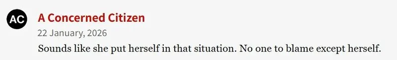 “感觉她是咎由自取。要怪就怪她自己吧。”
