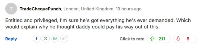“典型的特权小孩,估计从小要啥有啥,也习惯了爸爸能替他摆平所有麻烦。”