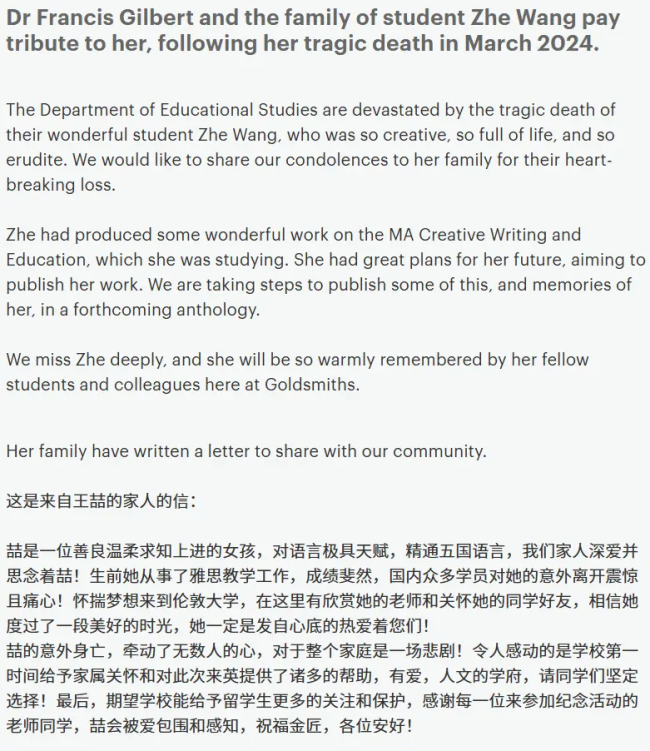 在亲友眼中,王某温柔体贴、幽默友善,性格开朗而细腻,很有自己的思想。学校也称她为“杰出的作家”,作品将被收录进学院即将出版的文集。