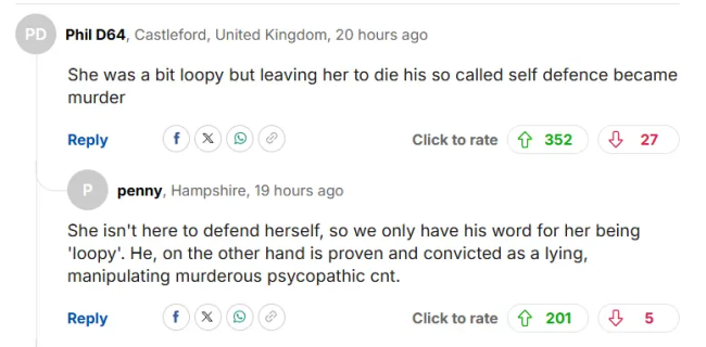 “她已经不在了,没法替自己说话,我们现在听到的都是他的说法。他才是那个被定罪的、说谎操纵人的精神变态。”