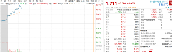 1月7日,半导体设备板块再次领涨半导体板块,高“设备”含量的科创半导体ETF(588170)盘中直线拉涨,成分股方面,安集科技(688019)上涨13.64%,和林微纳(688661)上涨13.24%,芯源微(688037)上涨12.29%,中微公司(688012),艾森股份(688720)等个股跟涨。