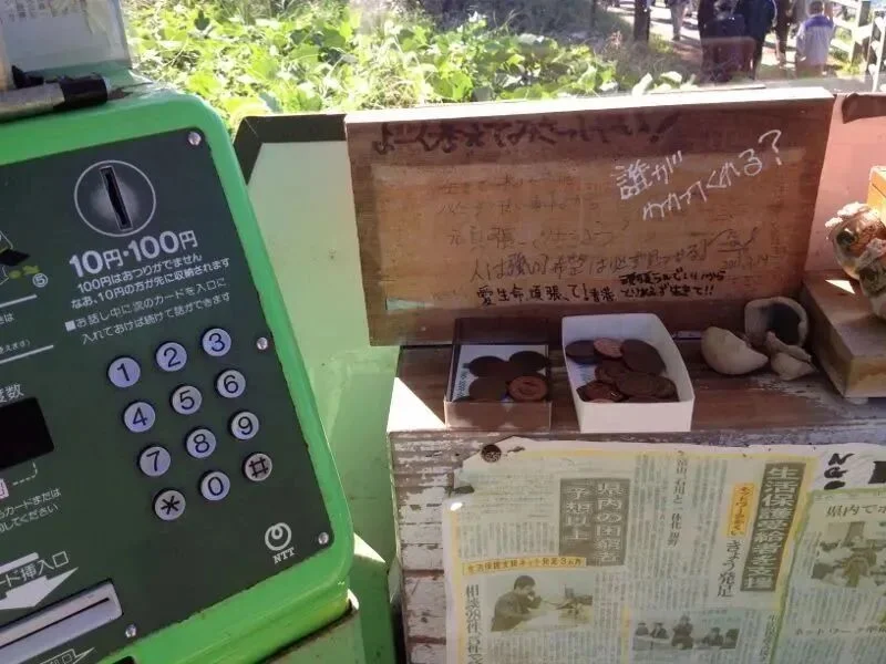东寻坊旁边还有一个电话亭,被称为“生命的电话”,电话亭里印有求助热线的号码,还放了很多硬币,专门为了给轻生的人拨通电话的机会。