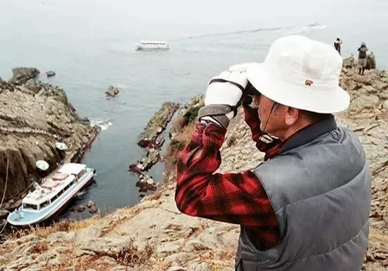 每天都戴着渔夫帽,脖子上挂着望远镜,去悬崖边眺望观察来往的游客。
