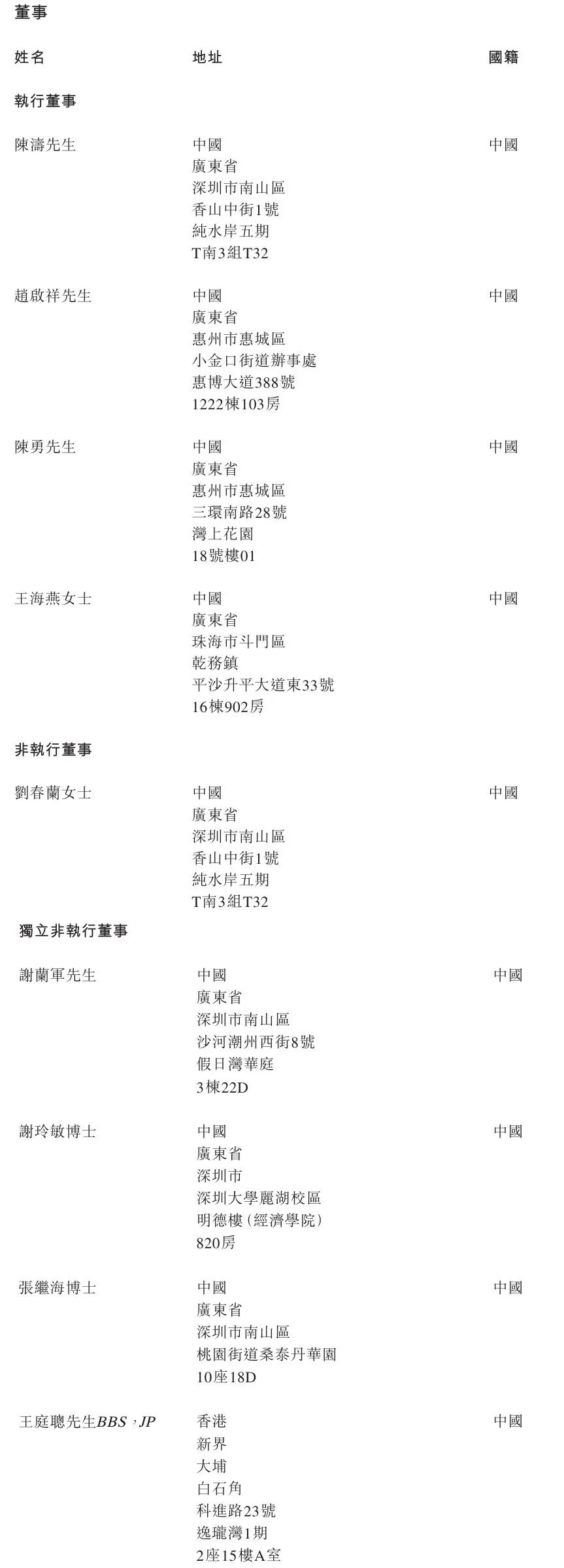 胜宏科技执行董事分别为陈涛、赵启祥、陈勇、王海燕女士;非执行董事为刘春兰女士,独立非执行董事分别为谢兰军、谢玲敏博士、张继海博士、王庭聪。