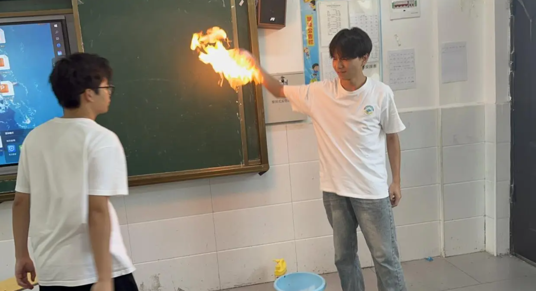 他当时用纸块代替木桶,用丁烷气体模拟泄漏的酒精,在火花的引燃下,一个巨大的火球爆发而出。