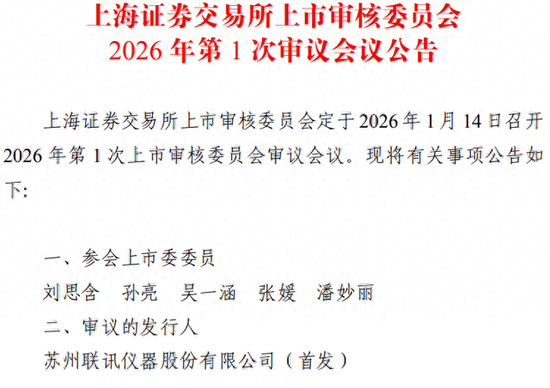 瞭望塔财经近日获悉,上海证券交易所上市审核委员会的审议会议定于2026年1月14日召开,苏州联讯仪器股份有限公司的科创板IPO申请将迎来终极考验。
