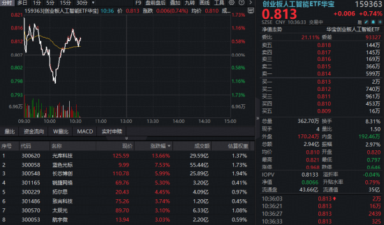 11月24日早盘,英伟达产业链获利好,光模块表现活跃,光库科技领涨超14%,长芯博创、锐捷网络涨超5%,中际旭创、新易盛等飘红。光模块含量超54%的创业板人工智能ETF(159363)场内下探逾1%后再度翻红拉升,实时成交额近3亿元。