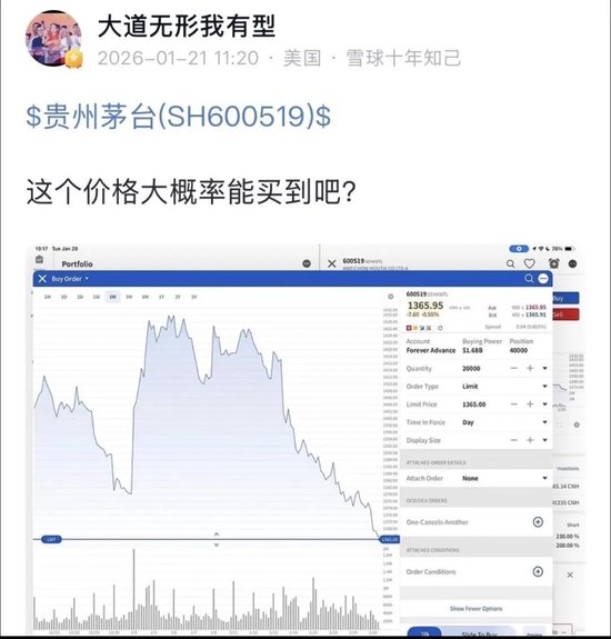 就在1月21日,他再度增持茅台,价格1365元,2万股,2730万人民币,对于他来说九牛一毛。不过,该微博已删除。