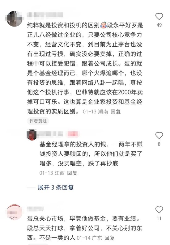 对此,但斌引来不少网友批评: 投资和投机的区别,一个正儿八经做企业,跟着公司一起成长,一个拿着投资人的钱,用业绩说话,买了唱多,没买唱空。