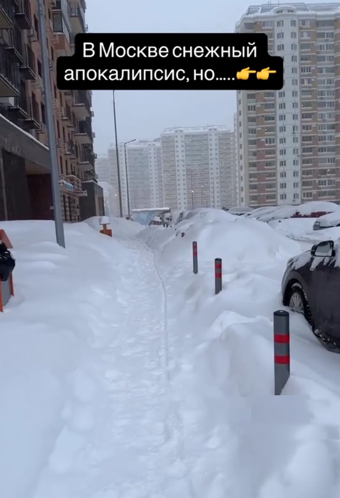 社交平台上的视频显示,莫斯科街道的积雪已经齐腰深,部分地区,积雪已堆积到了二楼建筑物,人们在道路上挖掘道路和自己的汽车。