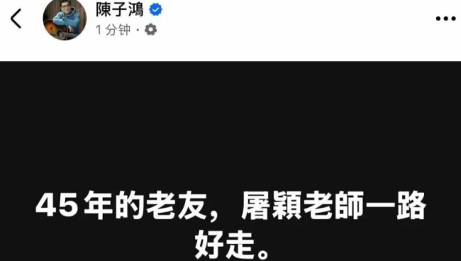 著名音乐人、台湾欢喜音乐唱片公司总经理陈子鸿在社交平台发文确认了屠颖离世的消息,陈子鸿写道:“45年的老友,屠颖老师一路好走。”