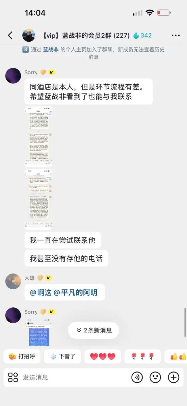 以下为自称犯罪嫌疑人在蓝战非会员群里的发言: