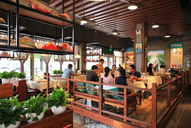 我们去的那天,禧越餐厅老板唐光养拎着小包正要出门,跟我们摆摆手说“要回家看老爸”。等过了半个多小时他发视频给老板娘苏春余时,我才反应过来,他老爸住在对面的越南芒街。他出国探亲比别人下班回家还要利索。“我们餐厅的厨师和服务员都是越南人,他们每天下班都回越南的家。”苏春余说。越南采用东九区时间,晚上8点从东兴下班,回到家是晚上7点,每天总有种多赚一小时的感觉。“有些勤快的,回去之后还能再打一份晚工。”苏春余说。越南员工学中文都很快,来中国工作不是难事,更重要的是东兴的服务员工资每个月2600元起步,芒街只有1500元,他们因此更加珍惜来中国工作的机会。“有时店里临时需要加班,员工们也从不抱怨。”苏春余说。