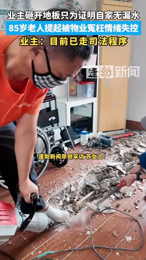 85岁业主被指管道漏水情绪崩溃,公证在场,请人砸开地板自证清白