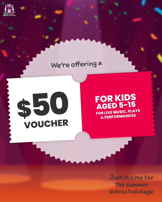 “这是我们对西澳家庭应对生活成本的又一支持举措,希望它既能让大家更轻松地参与本地文化活动,也为优秀的本土创意产业和艺术工作者注入强劲动力。而且这项计划正值学校假期,可谓来得正是时候!”