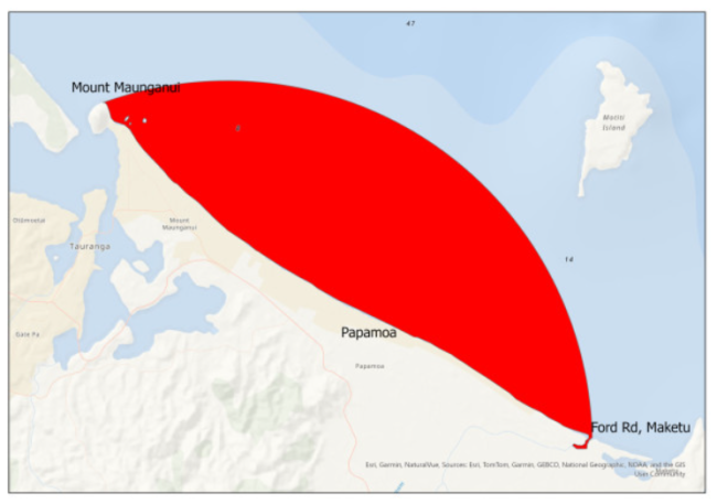 警告范围于今日(12月8日,周一)扩大警告范围,目前覆盖Mount Maunganui至Maketu以西的Ford Road沿海区域。