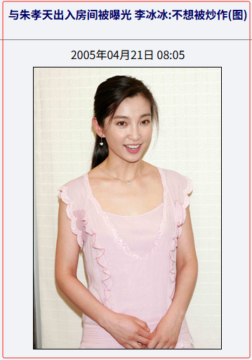 2005年4月,当“天冰恋”曝光没多久,就有人在李冰冰的个人网站讨论区发了一篇名为“揭秘天冰恋内幕”的文章。