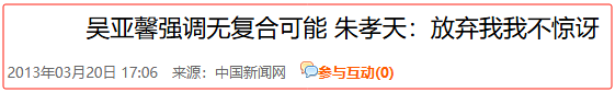 但吴亚馨不知咋想的,公开强调绝无与朱孝天复合的可能。
