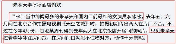 原来,不知哪位正义之士看不下去,放出朱孝天和李冰冰在北京某酒店偷欢激吻的亲热照和录影带,瞬间引起热议。