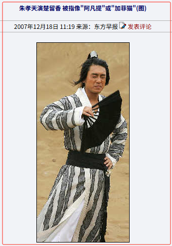 他的定妆照一出来,就被大众怒批,称朱孝天扮演的“楚留香”又肥又丑,像“阿凡提”和“加菲猫”,完全在抹黑原著。