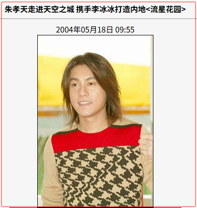 2004年,顶着F4成员花样美男称号的朱孝天,和内娱大花李冰冰合作主演另一部偶像剧《天空之城》。