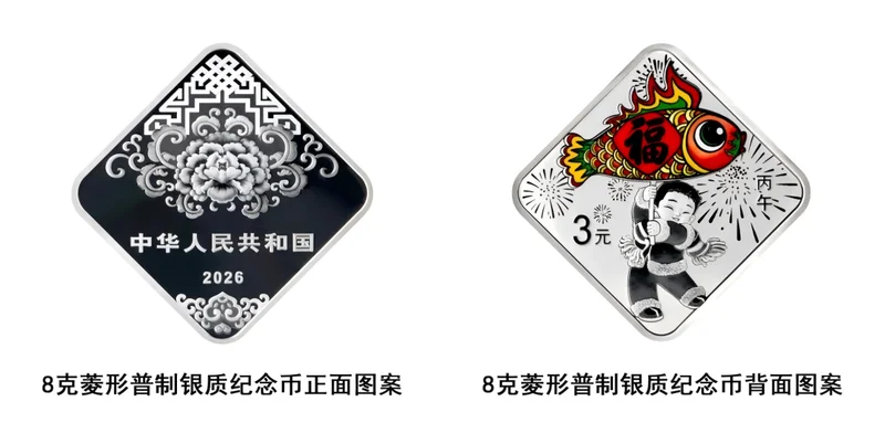 此外,中国人民银行还发行了2026年贺岁金银纪念币一套,包括1克圆形金币和8克菱形银币各一枚。