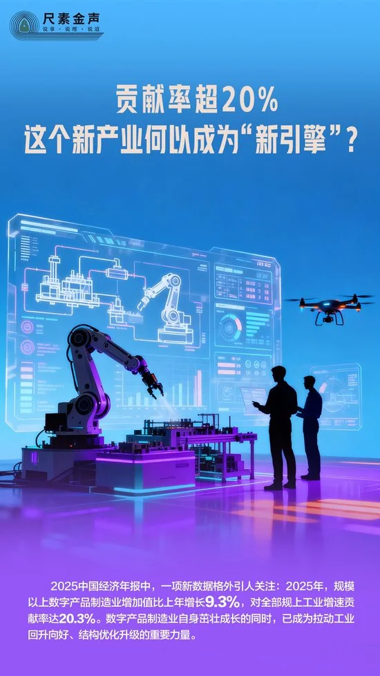 2025中国经济年报中,一项新数据格外引人关注:2025年,规模以上数字产品制造业增加值比上年增长9.3%,对全部规上工业增速贡献率达20.3%。数字产品制造业自身茁壮成长的同时,已成为拉动工业回升向好、结构优化升级的重要力量。