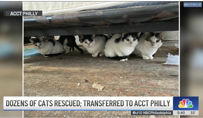 这次行动源于屋主的主动求援。1月30日,该住户联系 ACCT Philly 表示,其目前的经济与精力已无法继续负担家中的大量宠物,迫切需要专业机构介入。当工作人员首次登门时,屋内的猫咪数量之多令救援团队感到震惊。