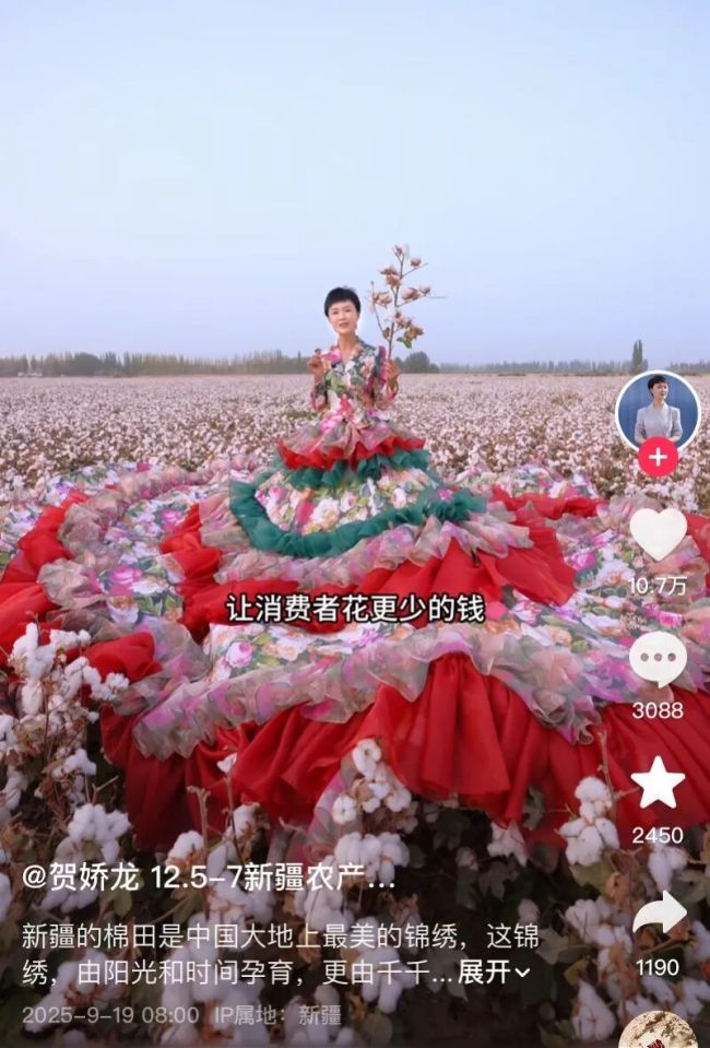 同时,声明强调,新疆维吾尔自治区农业农村厅、农产品品牌建设与产销服务中心及贺娇龙同志从未授权任何公司机构或个人,以“贺娇龙”名义收取“坑位费”“推广费”等各类费用。