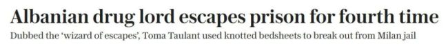 他叫托马·陶兰特(Toma Taulant),今年41岁,身高1米65,身材瘦削,是阿尔巴尼亚裔,他因贩毒、走私武器、袭击和暴力抢劫等多项罪名被判监禁,本该在监狱里服刑到2048年10月。