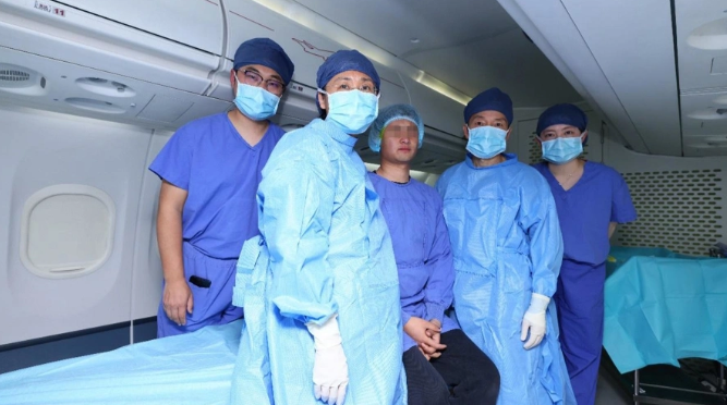 取得执业许可后,复旦大学附属眼耳鼻喉科医院随即开展新一轮演练,并成功在飞机上实施公益手术。