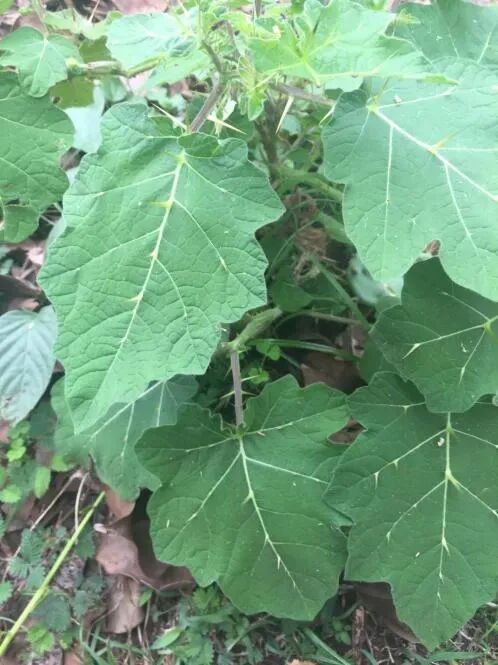 为什么不直接用乳茄自身的叶片?这是因为,乳茄的茎和叶子表面都长着黄色的针状尖刺,虽然较为稀疏,但仍有把人刺伤的可能性。而且,它的叶子观赏性也不太强。