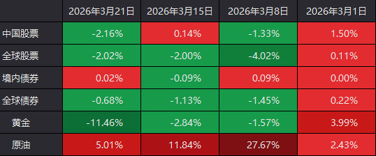 全球大类资产近4周表现