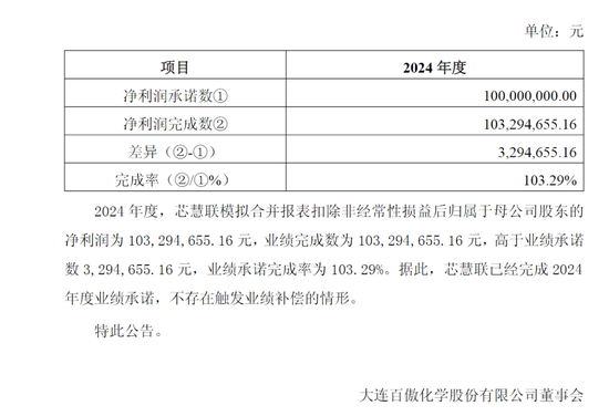 百傲化学并购芯慧联时,芯慧联管理层股东及原实际控制人刘红军对芯慧联2024年度、2025年度和2026年度业绩作出承诺。