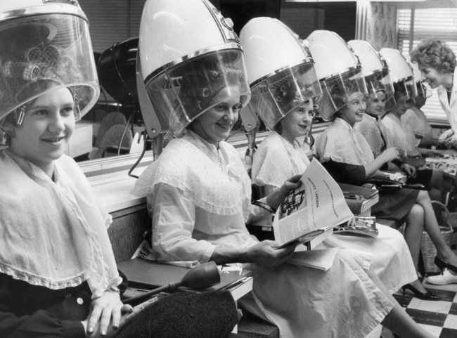 1964 年,Madame Josephine(右)与顾客在她位于Hindley St的沙龙——澳大利亚第一家开放式沙龙。